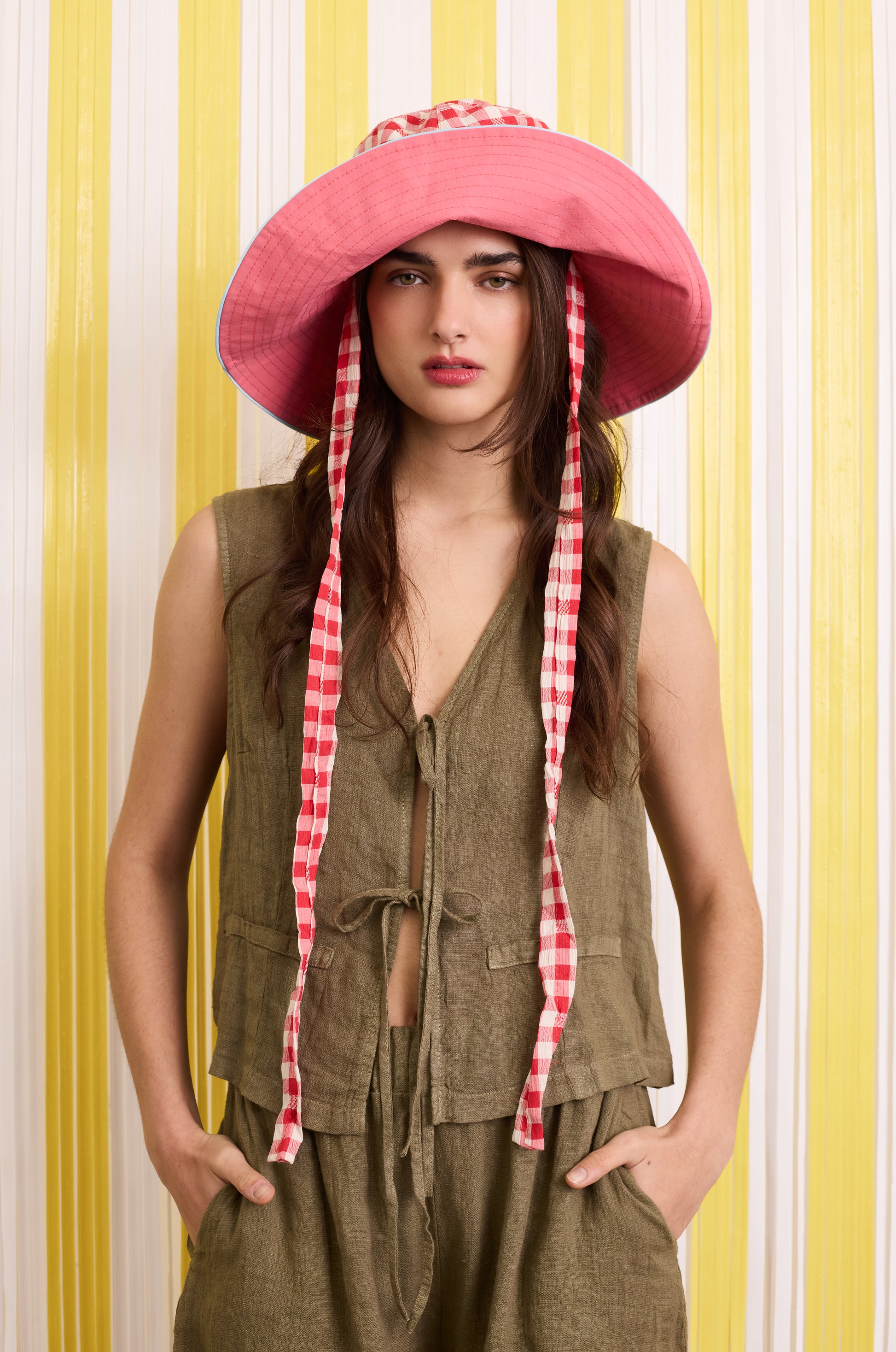 Blusa tipo chaleco con dos tiras de ajuste frontales.