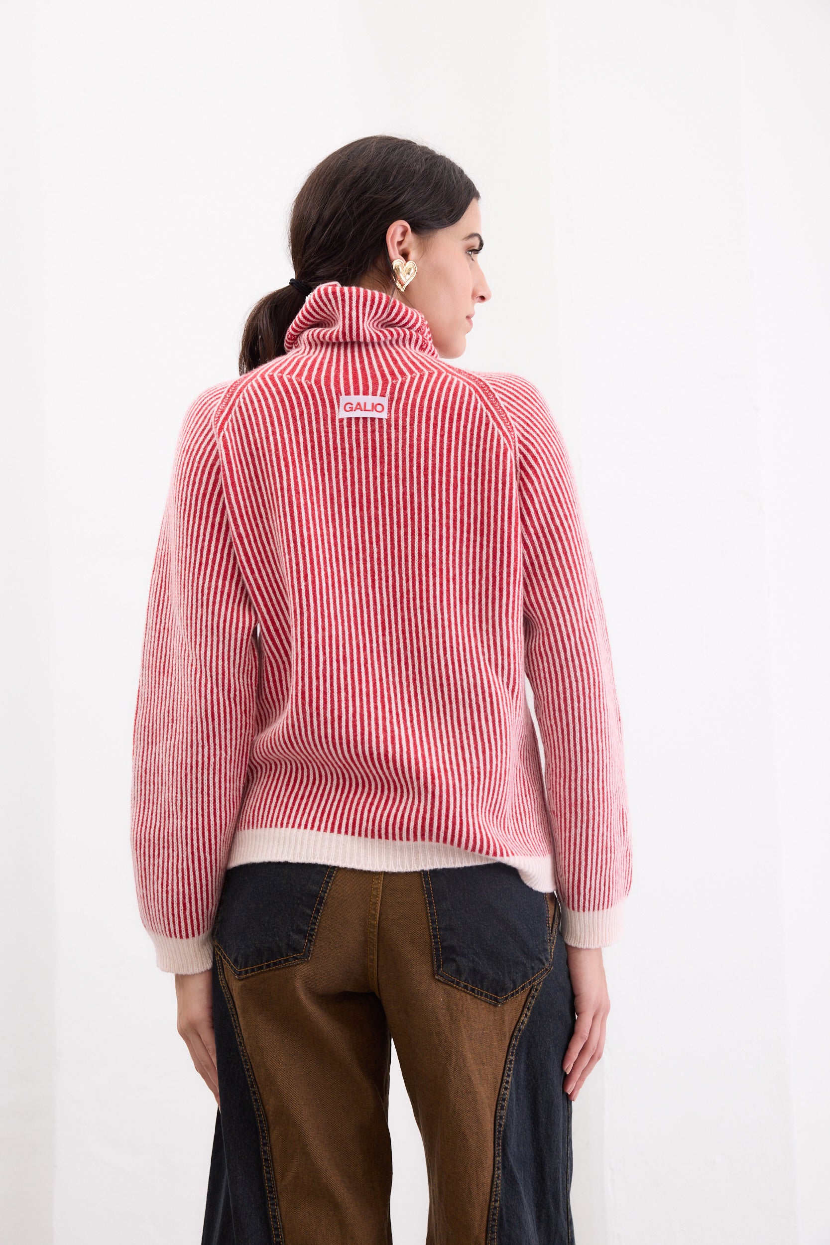 El buzo Tala es de esos que te ponés y no te querés sacar. Con cuello tortuga, diseño rayado y un calce ceñido al cuerpo, es ideal para usar solo o en capas. El toque de lurex le suma un brillo sutil que lo hace especial.
