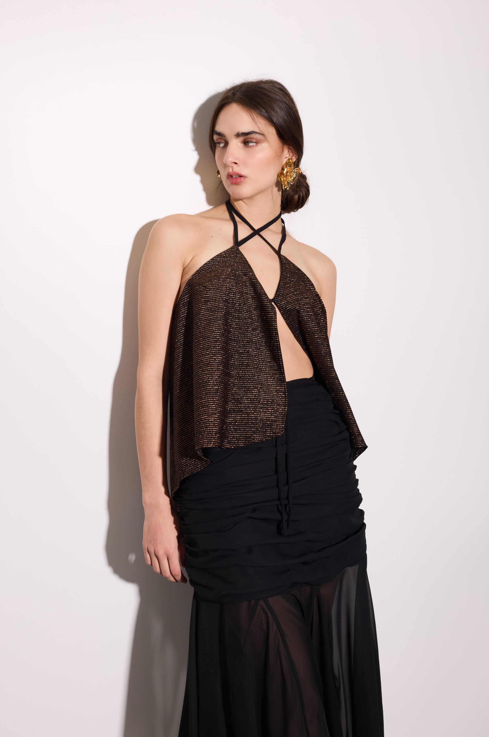 - Detalles: Diseño reversible con corte fluido en el pecho.
