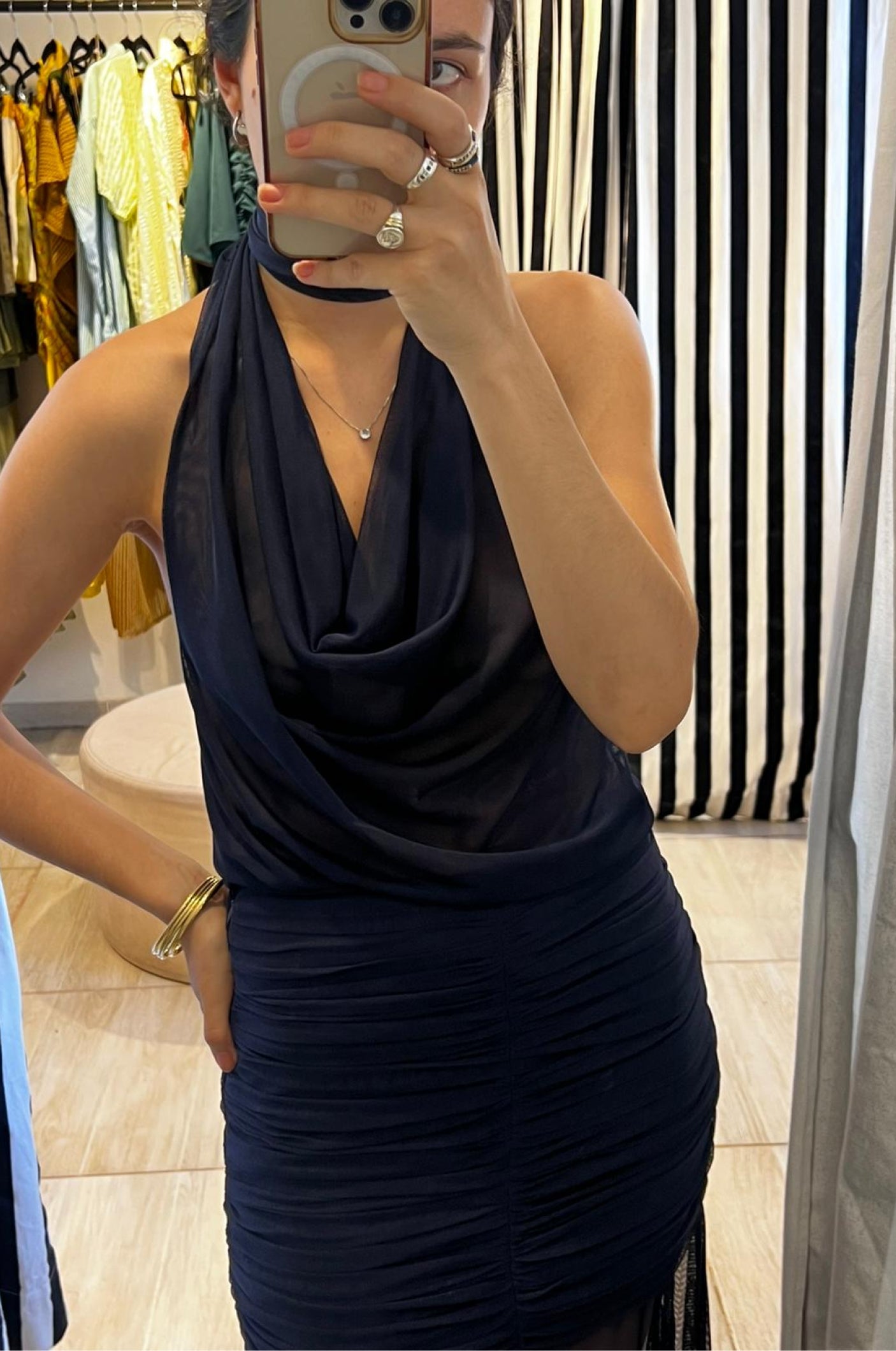 Top versátil con corte fluido en el pecho, ideal para el verano. Su diseño permite usarlo de dos formas distintas, manteniendo siempre un estilo elegante, clásico y cómodo.