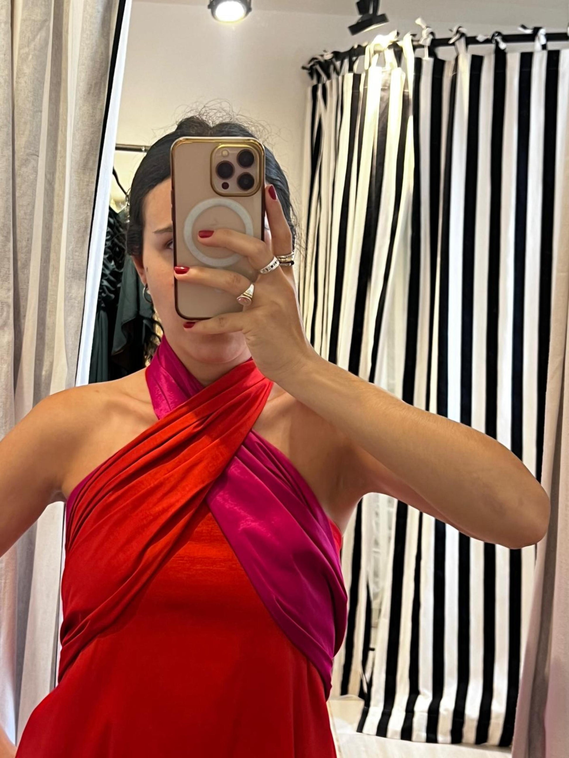 Una reversión del vestido dublin pero con un toque de originalidad. Mantenemos el diseño strapless y elástico en la parte trasera, se mantiene en su lugar toda la noche. Tiene bolsillos para mayor comodidad y la tela no marca nada.. osea ideal para bailar sin preocupaciones.